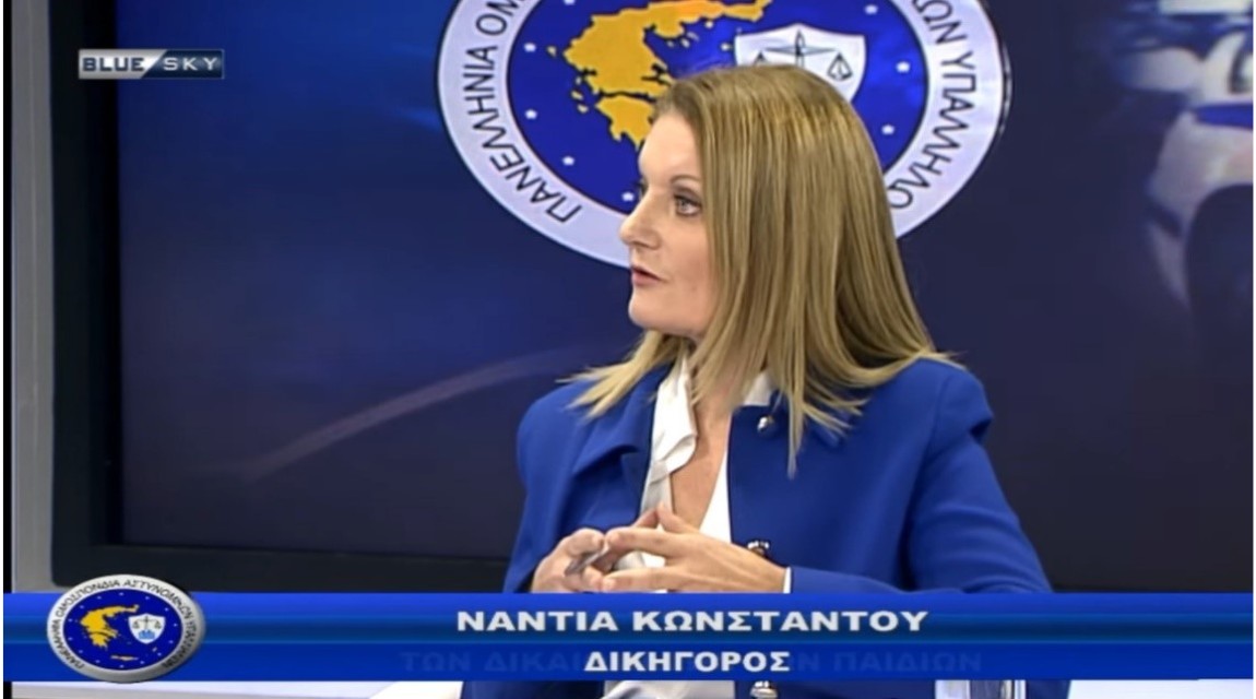 Η ΝΑΝΤΙΑ ΚΩΝΣΤΑΝΤΟΥ στην εκπομπή του Μανώλη Σταυρακάκη στο Blue Sky «Αστυνομία και Κοινωνία» με τίτλο: «Τα δικαιώματα και η προστασία των παιδιών στη χώρα μας». Παρέμβαση από 22’10.