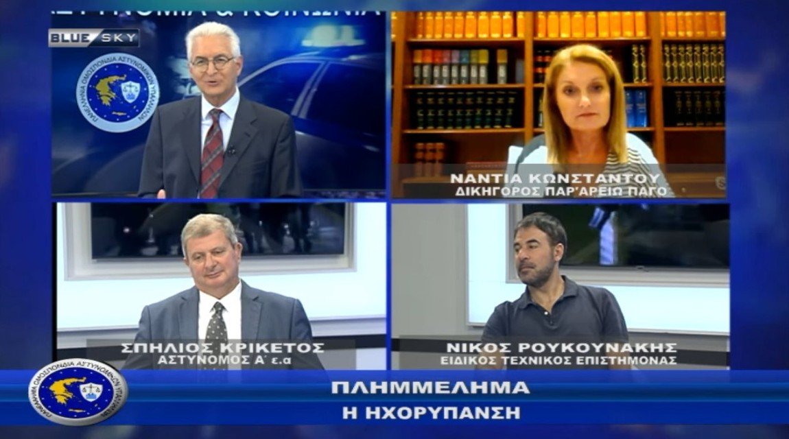 Η ΝΑΝΤΙΑ ΚΩΝΣΤΑΝΤΟΥ στην εκπομπή του Μανώλη Σταυρακάκη στο Blue Sky «Αστυνομία και Κοινωνία» με τίτλο: «Οι αλλαγές στον ποινικό κώδικα, σε σχέση με την ηχορύπανση»